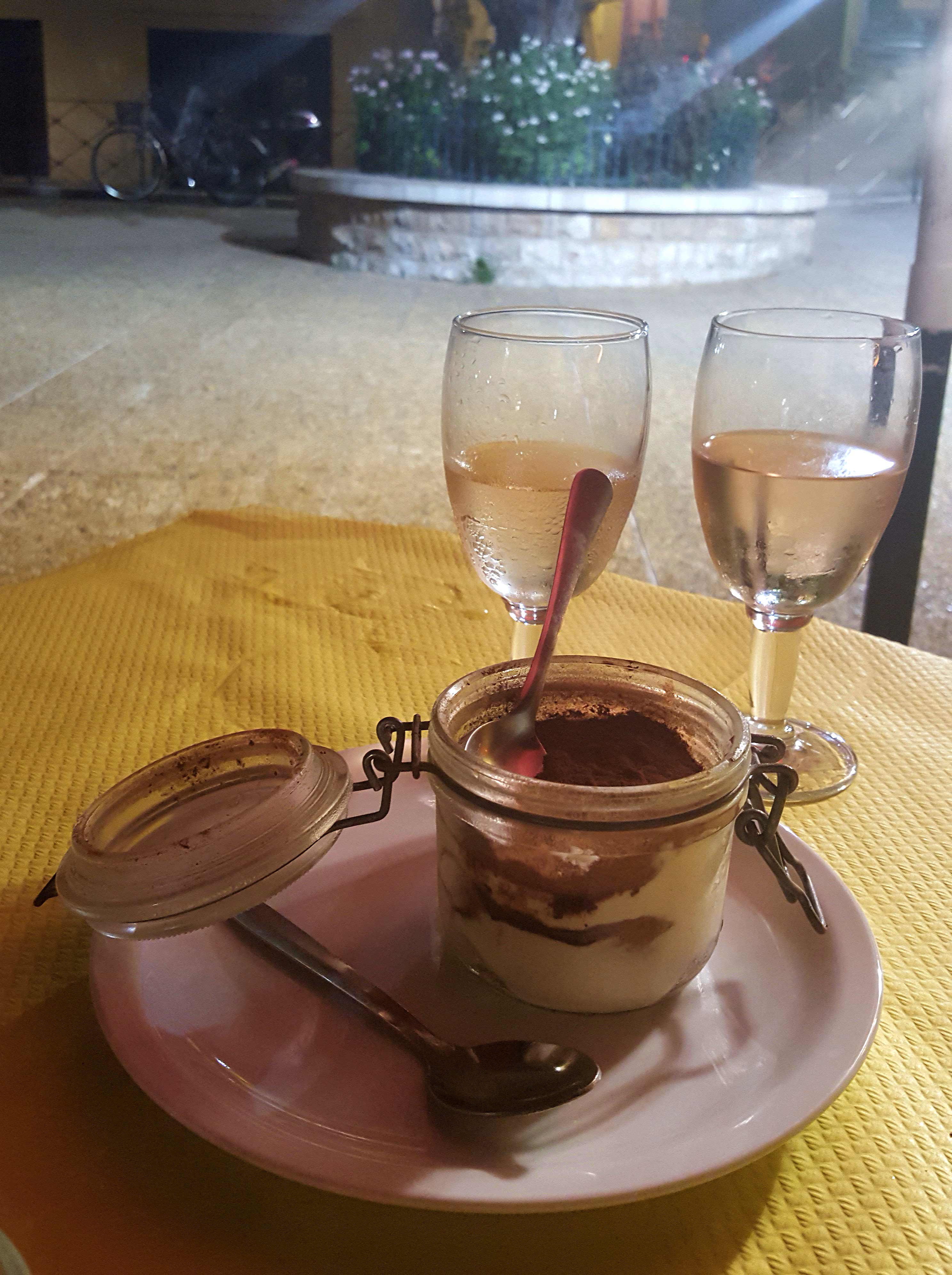 Well, it’s about time to eat, don’t you say? The first night I landed in very Italian restaurant, Al Dente. If you’re looking to have an Italian experience, this is the place. It’s run by an Italian family and they really know how to do it. First of all, you feel like you entered a theater, they recite and they sing and they create a wonderful atmosphere. The food is wonderful, I had the best pepperoni pizza and a great seafood cocktail, and everything at very low prices. The serving sizes are large so you can share almost everything. We paid around 45 euros for two persons with drinks (a delicious Côte de Provence Rosé, which comes in small bottles also) and dessert (a wonderful tiramisu that we shared. For a late dinner it was more than we needed. Oh, and don’t forget, water is free anywhere you eat.