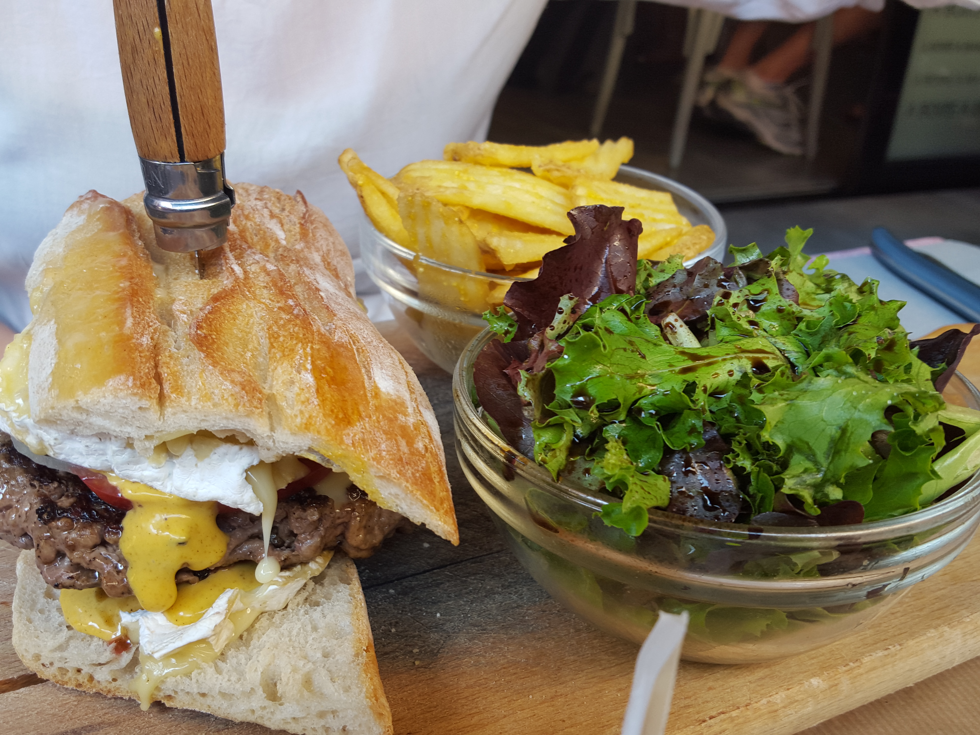 Since we left Paris, my best friend ( hey Dee, what’s up, I know you’re reading this), was craving for a good burger, she loves burger and she is always anxious to discover whole new interpretation of a burger. So as we were watching people’s plates on a side way alley in the same area, we discovered another family run restaurant : A boire, A manger. I really can’t describe the feast we had there. She had the Camembert Burger with home made fries and salad. Let’s just said that her boyfriend could be jealous with the sensations she had devouring that melted Camembert burger. I had the most delicious pork meat I have ever eaten, marinated in herbs and olive oil, accompanied by french fries and salad, it was really a feast. I also asked for some barbecue grilled bread, because I was drooling at someone who softened his bread in the meat sauce. I was happy to see they didn’t count it on the bill:)