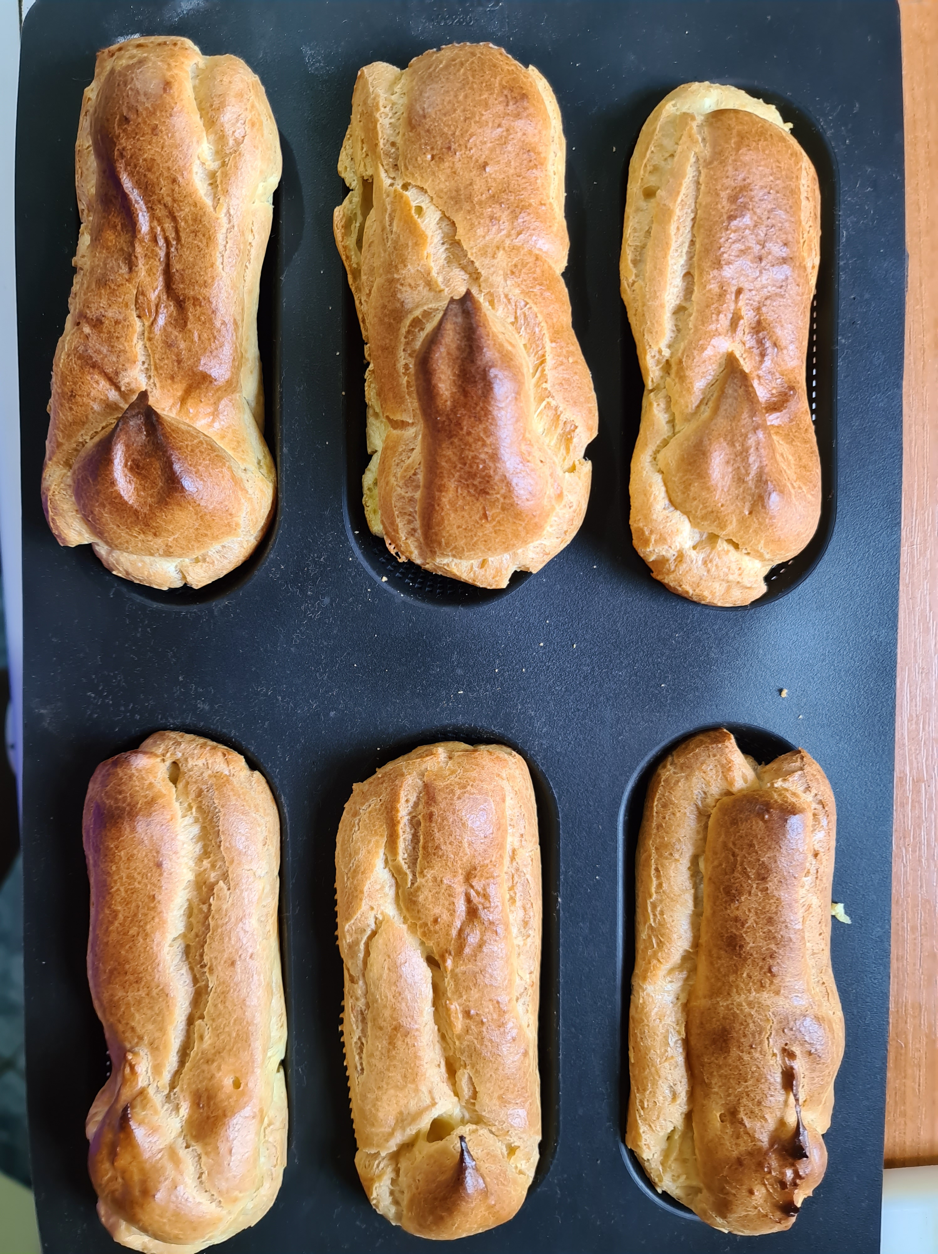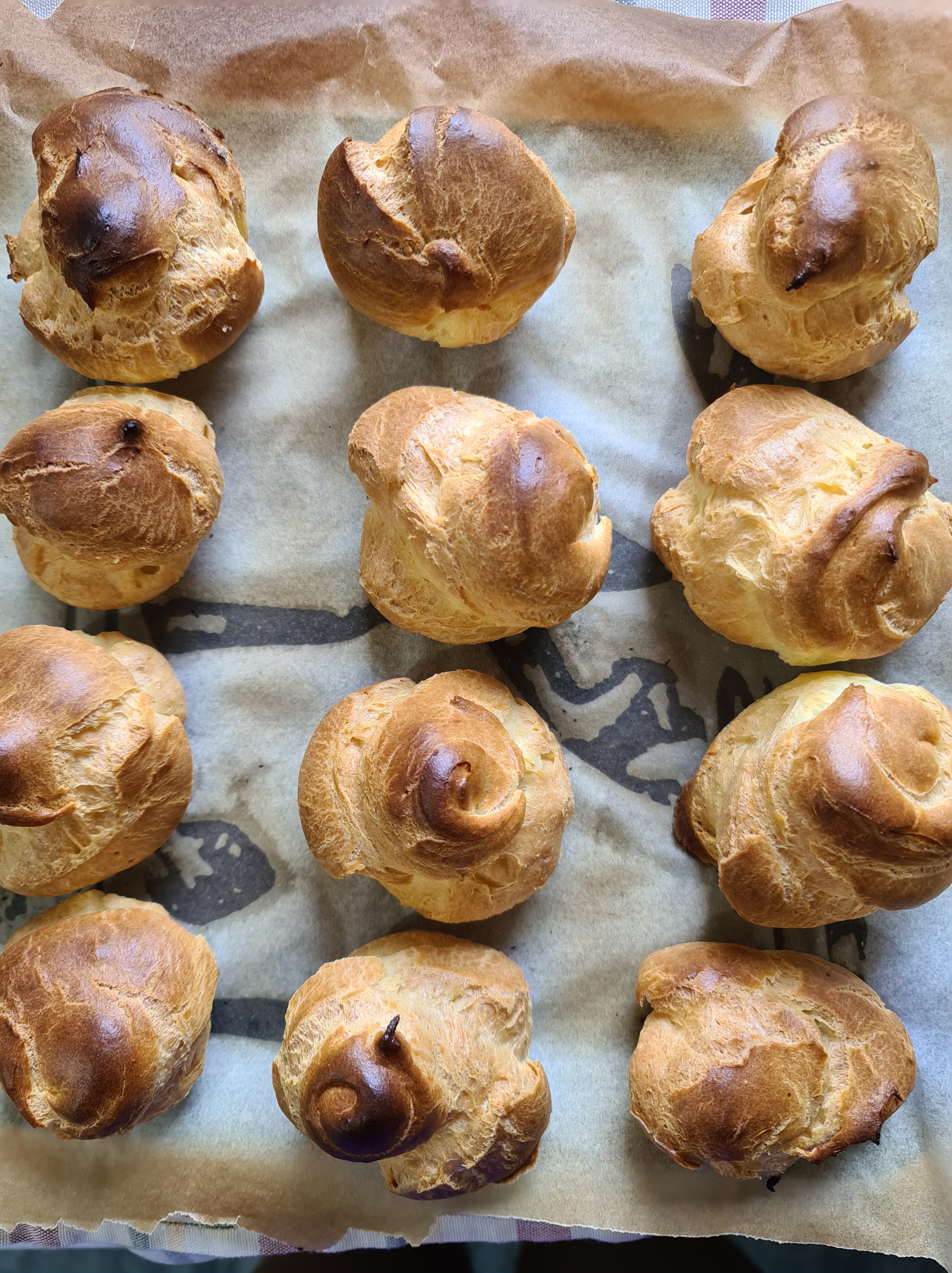 Pe o tava tapetata cu hartie de copt, dam forme cojilor noastre cu ajutorul unui pos. Eclere, choux, paris brest, orice. Pentru acest Sfant Valentin eu am facut eclere in forma de inimioara si mini choux.