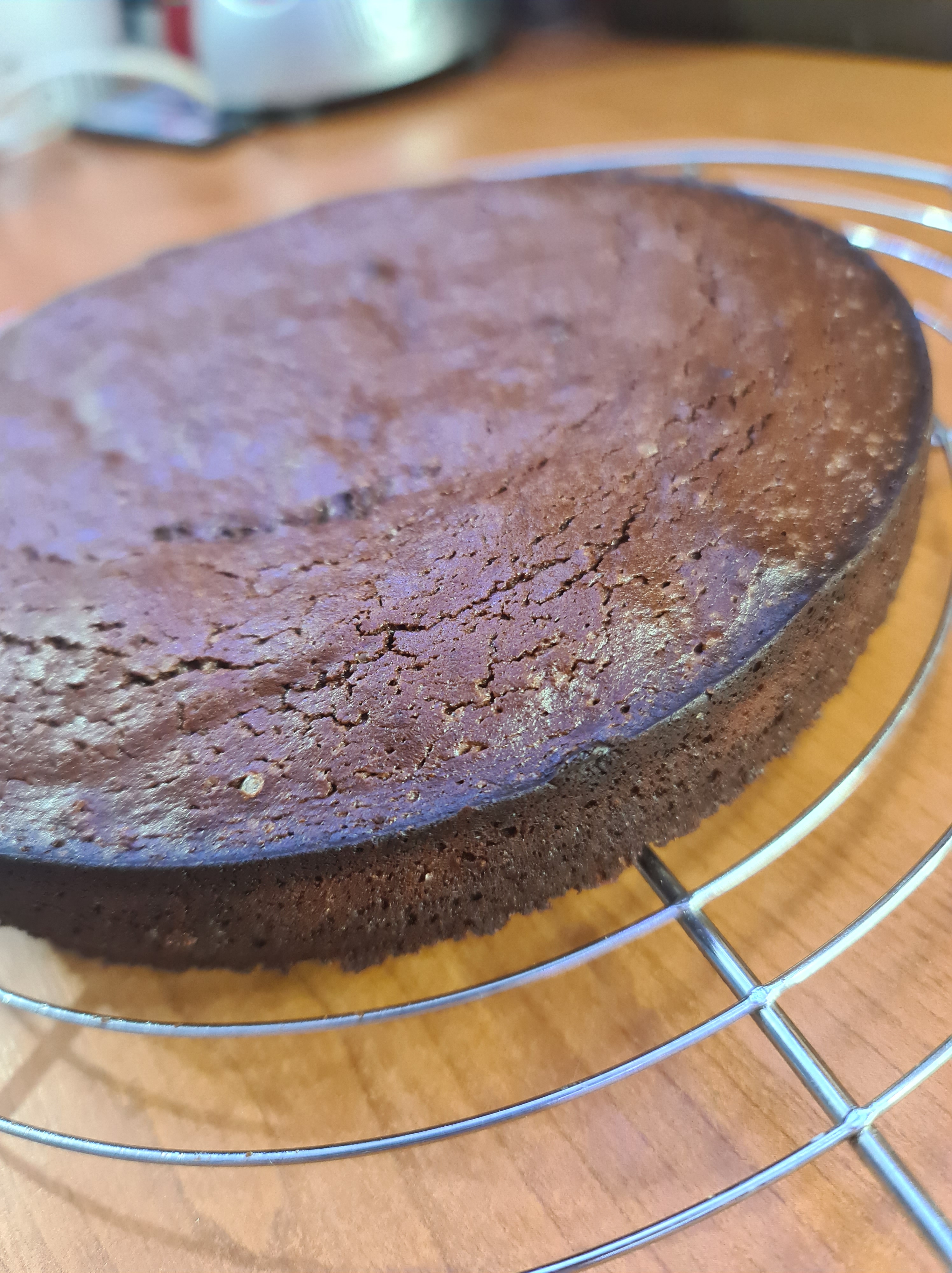Am pus o foaie de copt pe ele, cate un fund si apoi greutate. Cred ca greutatea nu a fost suficienta fiindca foaia de sus nu era bine lipita de crema. Fetele din live au zis sa pun o oala cu apa, dar am uitat:))